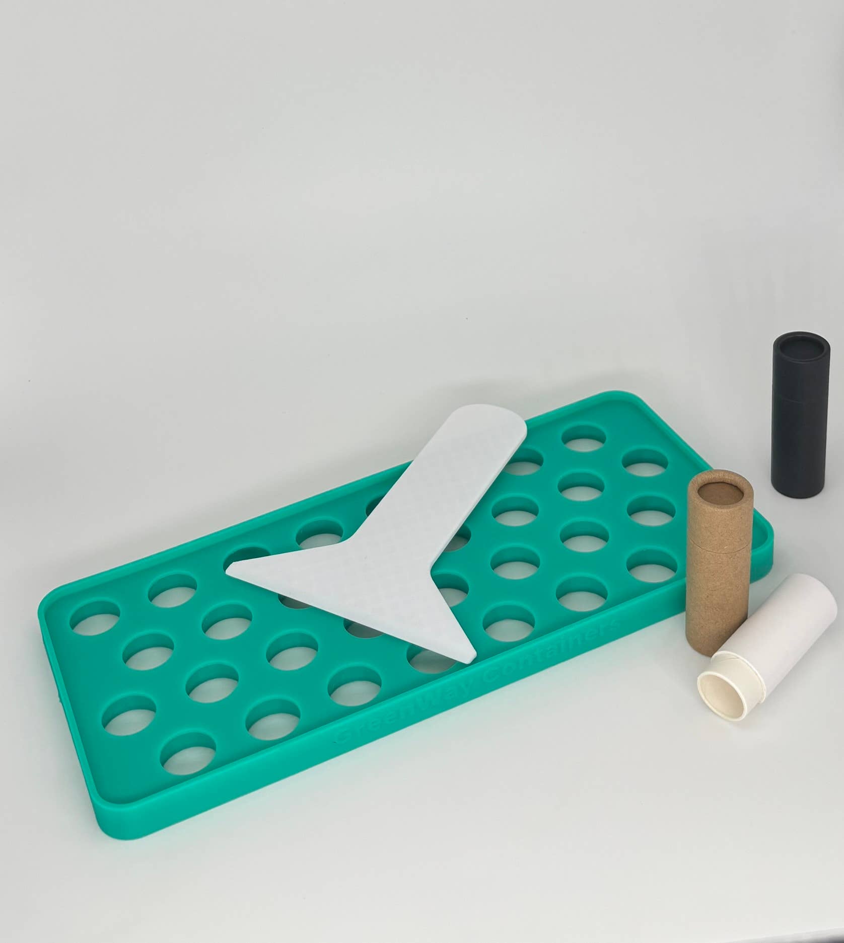 Our plastic-free tubes are the same volume as conventional plastic twist-up tubes and are crafted from sturdy, FSC-certified kraft paper & lined with vegetable wax. Not only recyclable but compostable, too! We also have specially designed FILLING TRAYS for them, available in our shop.